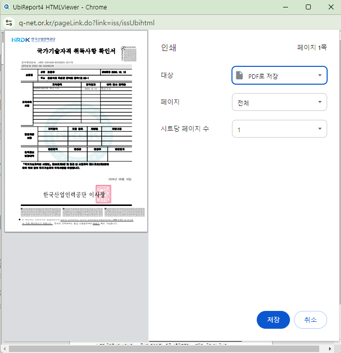 신청서를 발급받으신 후, 팝업에서 나오는 화면에서 인쇄를 누른 뒤, 위 그림과 같이 PDF로 저장을 눌러 파일로 저장하셔야 합니다. 저 같은 경우에는 파일이름.jsp.pdf로 저장되었는데, 중간에 .jsp를 지우셔야 pdf로 인식하여 파일이 제출됩니다.